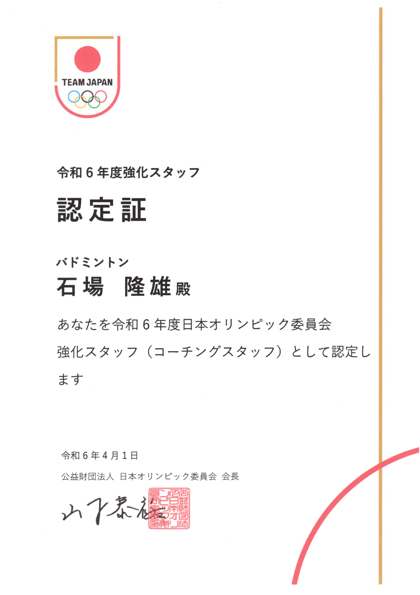 石場は日本体育大学、ヨネックス時代に選手として結果を残し、選手引退後日本体育大学バドミントン部の監督として2016年までの30年間指導者として毎年日本代表やオリンピック選手を輩出してきました。