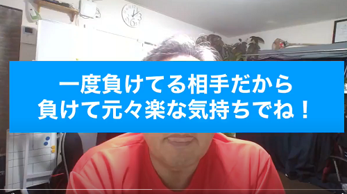 一度勝ったことがある相手だとどうしても勝てると思っていると落とし穴に陥る事がある、そんなと時に観て欲しい |